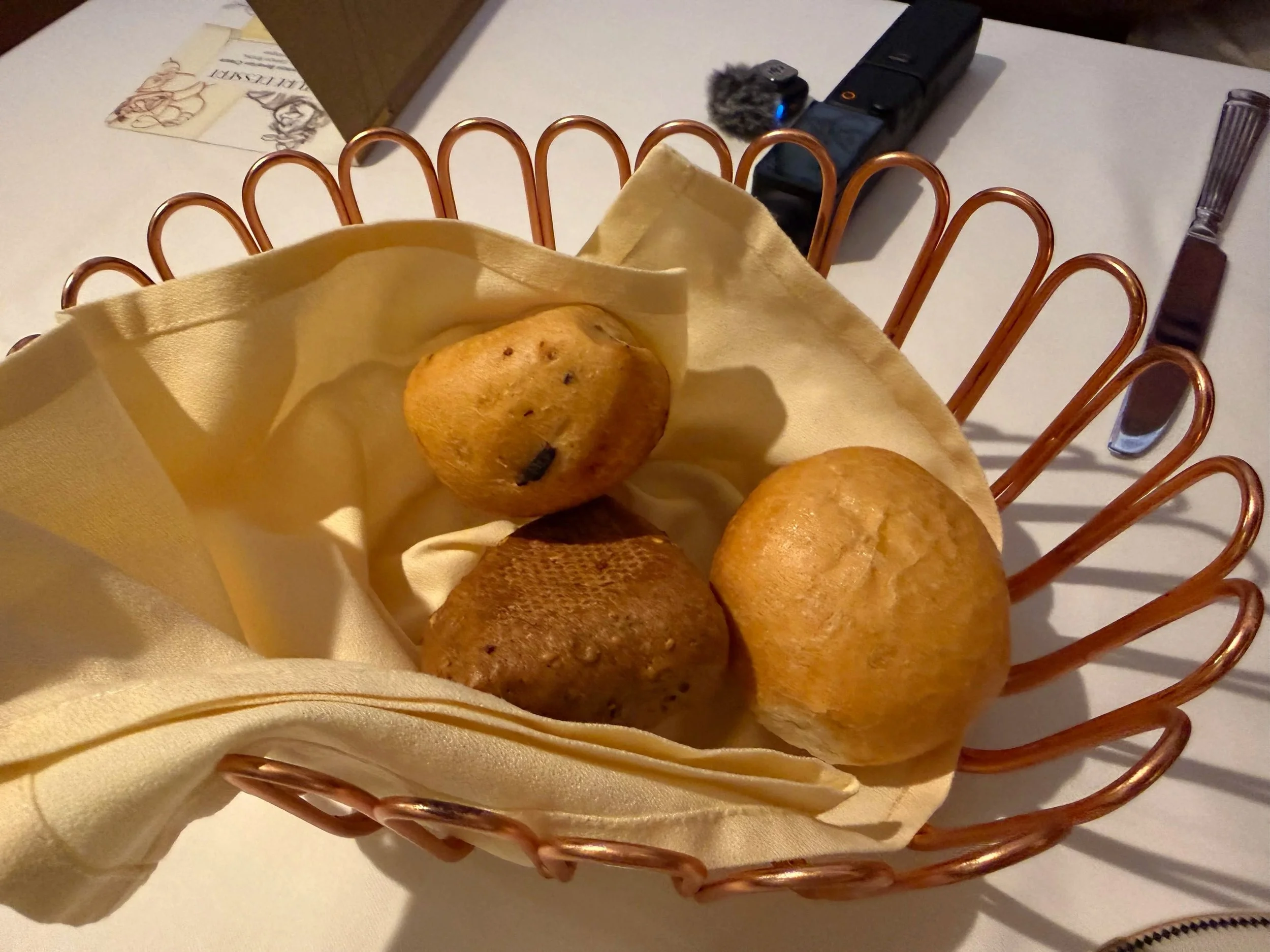 Soft bread, but the yoghurt dip felt strange and out of place—more suited to a curry than a bread starter. We’d have preferred butter.